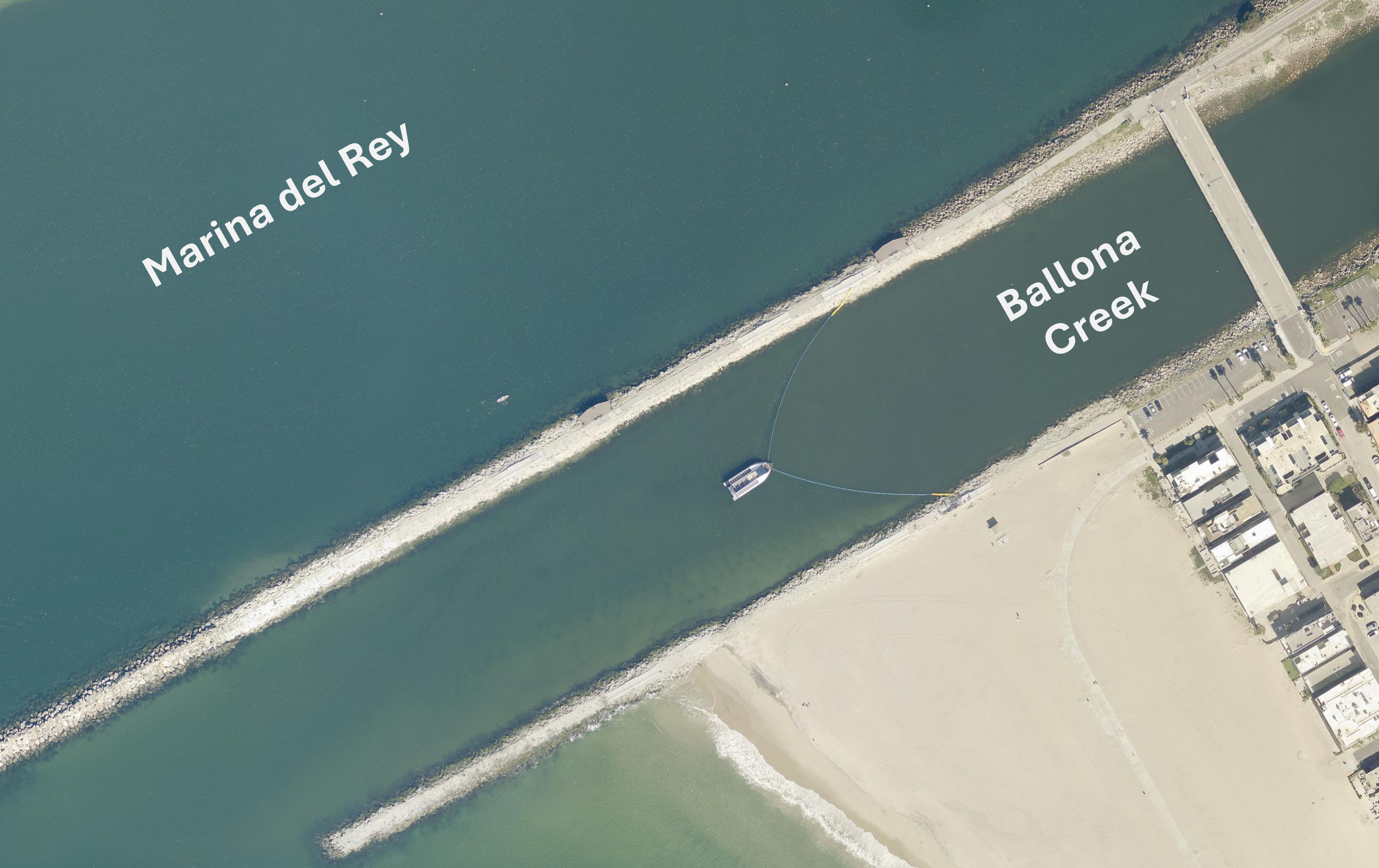 The Interceptor™ is located near the mouth of Ballona Creek, downstream of the Pacific Avenue Bridge.
